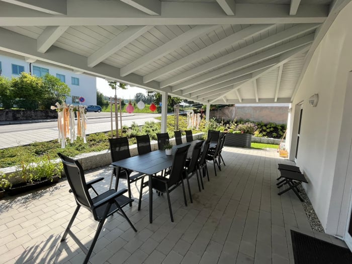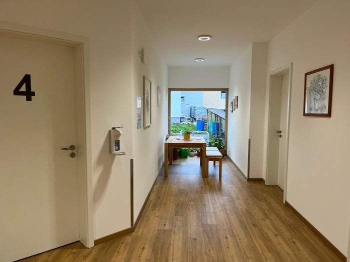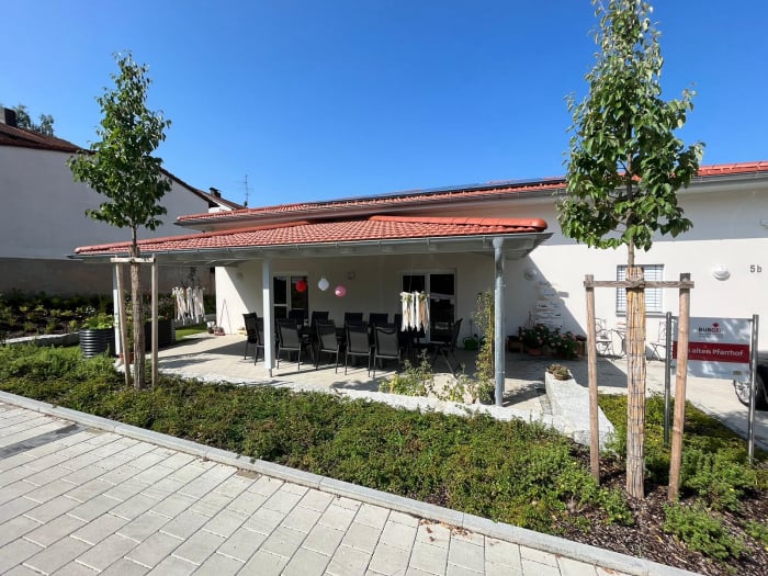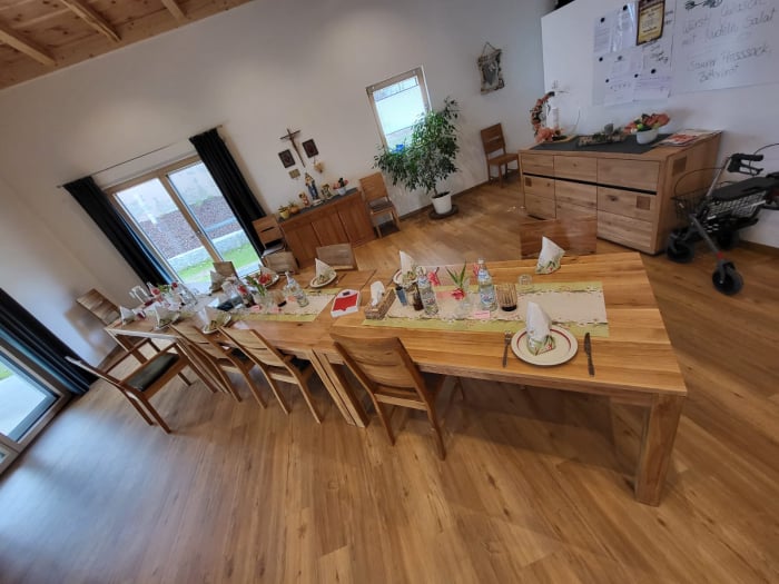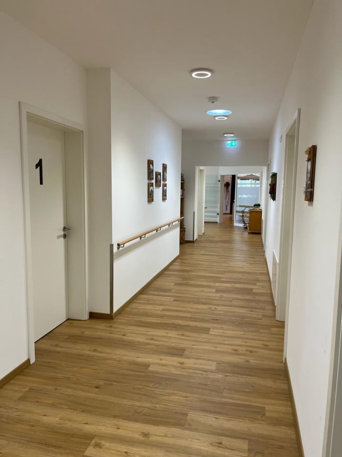 Es gibt einen gemeinsamen Wohn- und Kochbereich, Speisekammer und weitere Gemeinschaftsräume. Dabei werden viele Aspekte des Wohnens im Alter berücksichtigt.